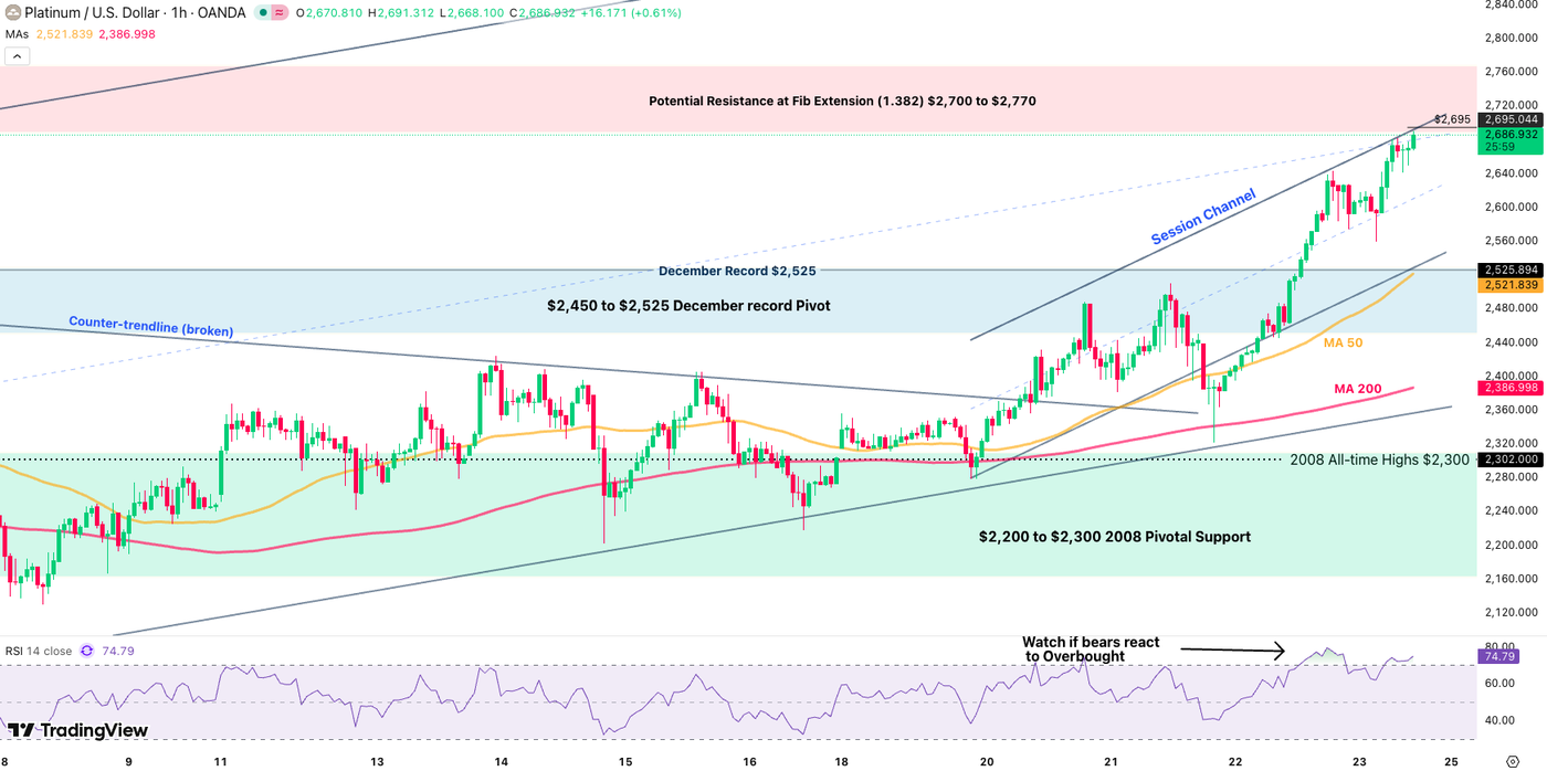 Platinum has extended towards the $2,700 potential resistance zone – The buying is now stalling a bit.