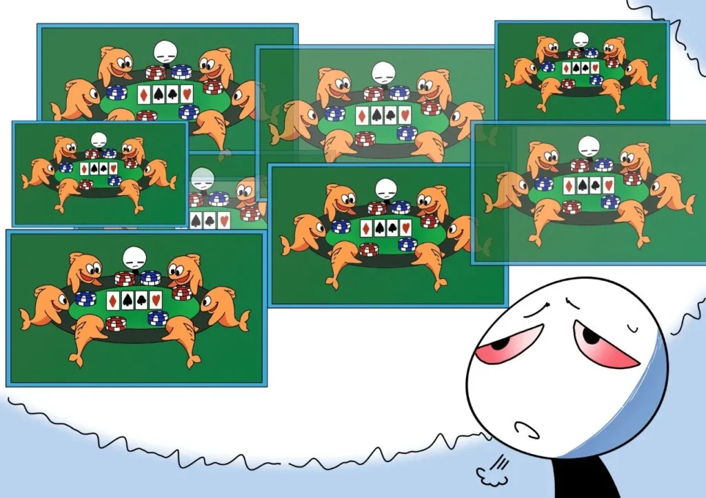 I start to feel bad. My conscience gets the better of me. Maybe BumAssPokerPlayer6969 just emptied out his little daughter’s college fund. This the moment where I start to realize that poker is an immoral, zero-sum game where good play essentially means exploiting weaker people’s addictions.