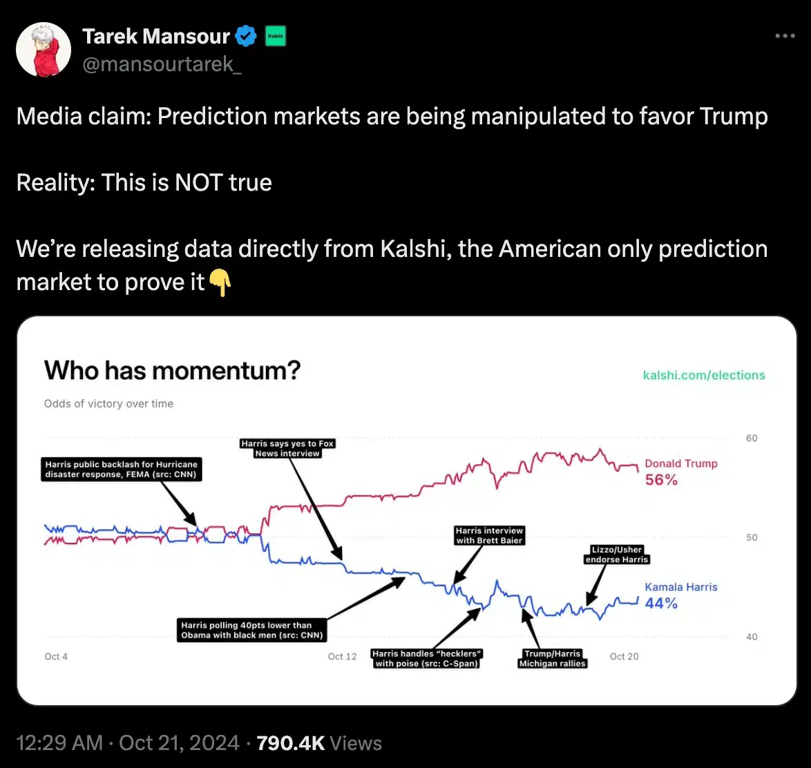 In fact, Tarek Mansour, Co-founder of Kalshi, also took to X to emphasize that media narratives often diverge significantly from the actual state of affairs.