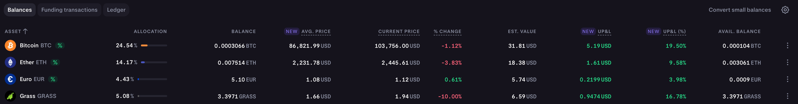 | Average Price | Your true entry — what you paid for each asset, weighted by balance |