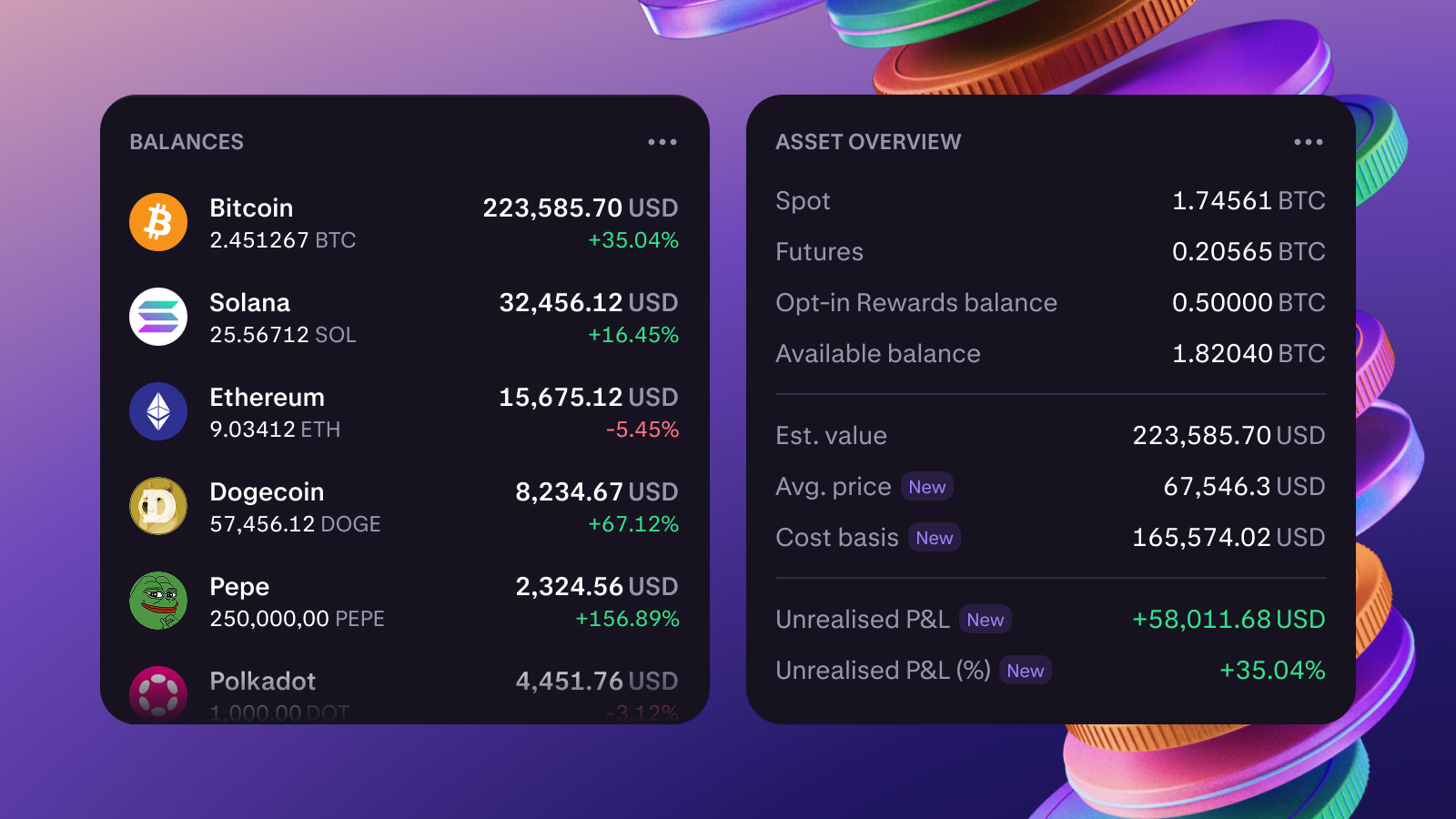 - View your Unrealized P&L, Cost Basis, and Average Price for every asset — and use it to guide your next move!