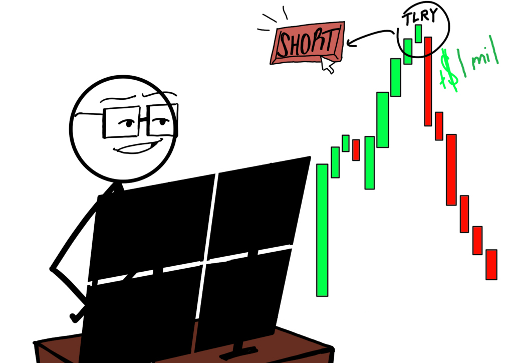 At this point, while TLRY trades near $300, the entire floor has flattened their short positions and nobody is daring to take it on. Clockwork has told his team that he’s hands-off on the stock until the next day.