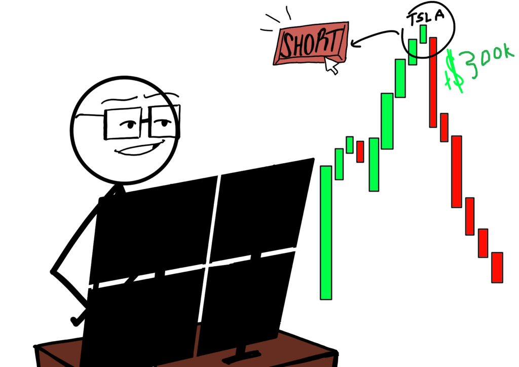 TSLA drops its first-ever impressive earnings, and by early Q1 2020, the stock rockets close to $1000. Clockwork misses the full ride on the long side—his bearish bias holding him back from capitalizing properly. But no matter. The rocket flew high enough for him to short near the peak, catching a clean 20% correction on the way down. He takes his slice and moves on, satisfied but never truly content.