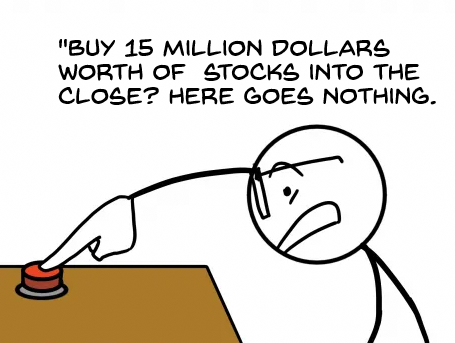 Yeah, that’s not really what happened. Clockwork simply saw all the top traders at WTG trade gung ho on closing imbalances, spamming their entire buying power on major high beta names into the bell. He knew this was one of their major profit centers that had always eluded him and he figured–why the fuck not? and went for it as well.