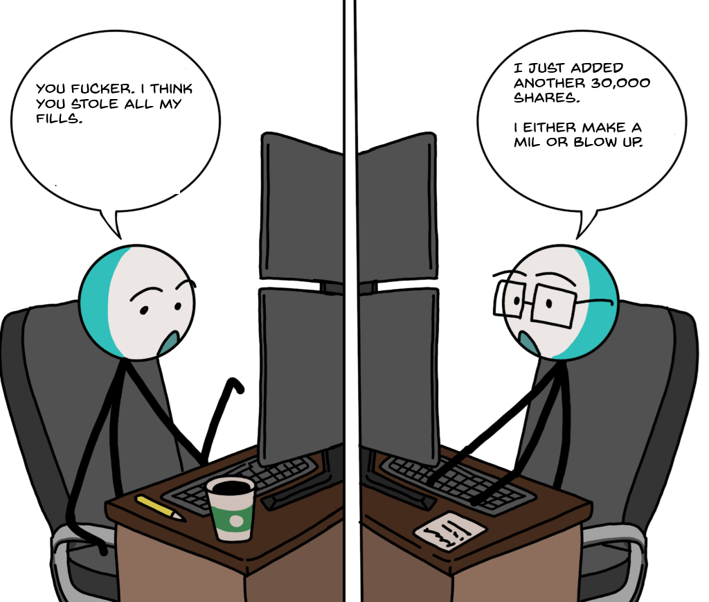 It’s Clockwork’s best trade ever up to that point. All his teammates and a few others outside his pod gather around him during post market review. Victor gives him a high five as he walks by. They all want to know, how’d he do it? How’d he figure out it was the top and grab all that size when everyone wanted to give up?