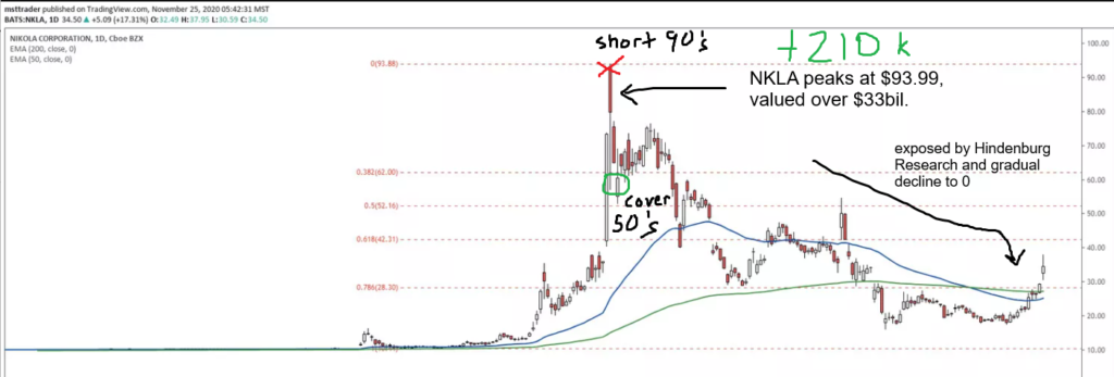 One shining example of the SPAC mania was NKLA—Nikola Corporation—an electric vehicle company that promised to ‘revolutionize’ the transportation industry with hydrogen fuel cell and electric trucks. Initially hailed as the next Tesla, Nikola rode a wave of hype to an insane valuation higher than Ford—all before producing a single vehicle. Everything unraveled when allegations of fraud surfaced, including staged promotional videos and inflated technology claims, leading to founder Trevor Milton’s resignation and eventual fraud charges. Guess who shorted the top?