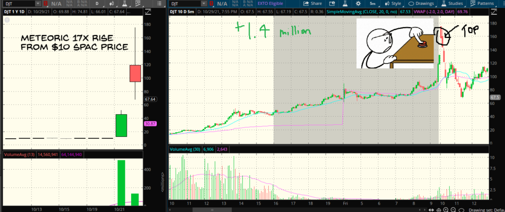 DWAC in October was another TLRY-esque morning for the MBC desk–tons of traders taking way too much drawdown shorting the way up and then Clockwork coming in for the clean up job after the exhaustion top. It’s his best trade all year.