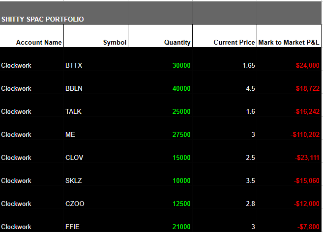 Clockwork’s new SPAC portfolio wasn’t spared. Nobody wanted to buy this trash anymore and he’s left holding the bag.