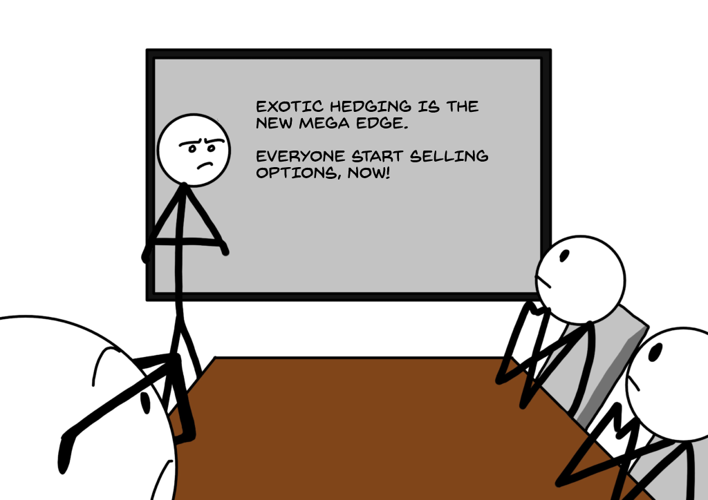 Victor: We’re short-term traders—we adapt. The game’s changed, and it’s time we step into the world of exotic hedging.