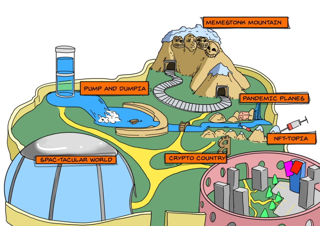 2021 rolls in, and if 2020 was the wildest ride we’d ever traded—a rollercoaster of crashes and rebounds—then 2021 was the theme park of absurdity. The market turned into a FOMO World where everyone with a Robinhood or WeBull account thought they had a fast pass to Wall Street. Meme stocks like GME and AMC were the main attractions, pulling in crowds like a rickety, too-good-to-be-true thrill ride. Discord pump groups like Atlas Trading rose and fell like a malfunctioning Ferris wheel, while TikTok introduced the “financial influencer” as the park’s over-the-top mascot—dancing around in a bright costume while suggesting the most ridiculous specualtive investments. Then there was the crypto bubble, making a grand return as the park’s haunted house—exciting, overhyped, and terrifyingly unstable—while NFTs strutted in as the overpriced gift shop souvenirs: shiny, useless, and inexplicably expensive. The whole 2021 market was one big carnival of bubbles.