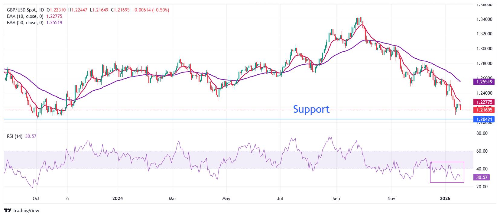 GBP/USD Price Forecast: Remains below 1.2250 barrier near nine-day EMA