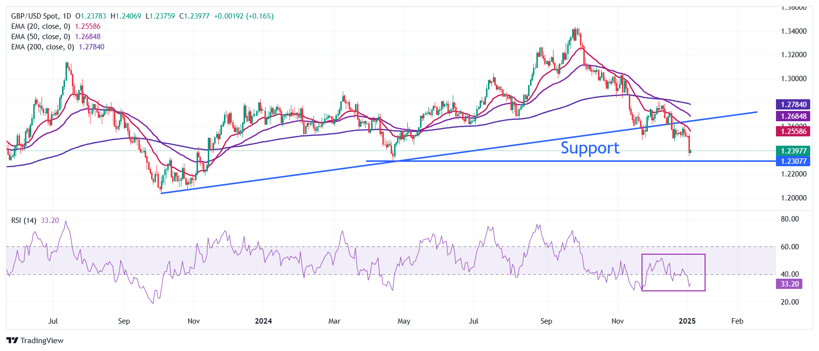The Pound Sterling (GBP) trades near a more-than-eight-month low around 1.2400 against the US Dollar (USD) in Friday’s North A session. The GBP/USD pair is under pressure while the US Dollar has extended its bull run as market participants expect fewer interest rate cuts from the Federal Reserve this year. Read More…