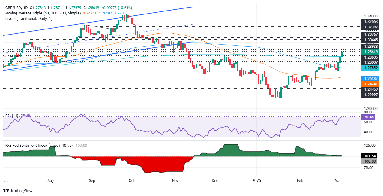 The Pound Sterling (GBP) extended its gains versus the US Dollar (USD) on Wednesday, as market participants punished the latter. Market participants priced in additional monetary policy easing by the Federal Reserve (Fed). United States (US) data shows the economy is weakening, with businesses and consumers turning pessimistic, mostly on trade policies. GBP/USD is trading at 1.2864, up over 0.55%. Read More…