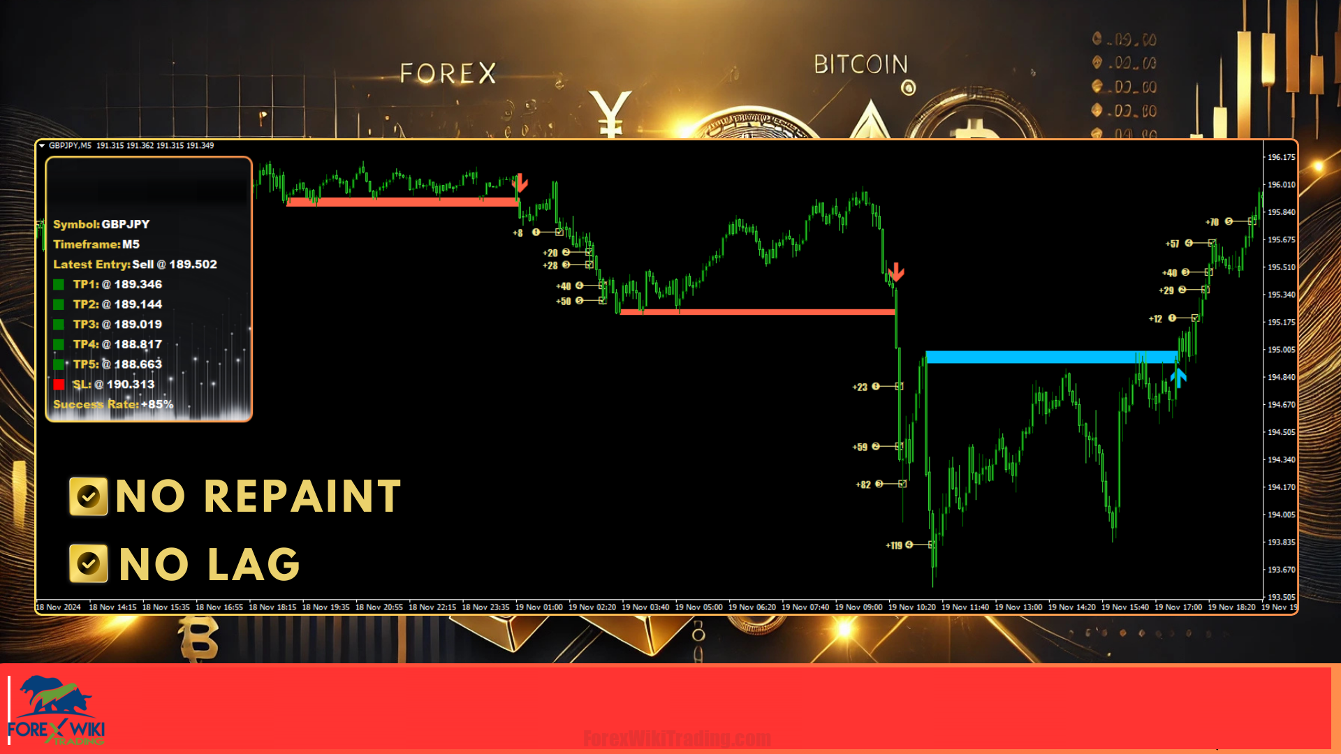 Whether trading forex pairs, commodities like XAUUSD (Gold), or indices, the indicator functions seamlessly on any timeframe, from M1 to daily charts.