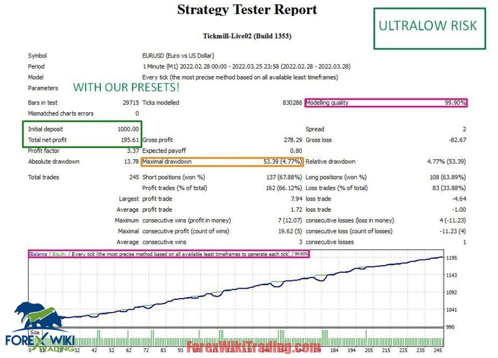 - The backtest indicates a total net profit of $195.61 on an initial deposit of $1,000, reflecting a significant return over the test period. A profit factor of 3.37 suggests that the EA generated $3.37 for every dollar risked, which is an impressive metric in Forex trading.