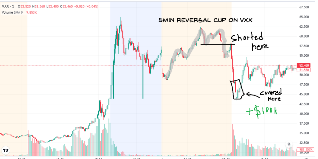I did have some personal breakthroughs that I credited to the trading patterns I learned from the Professor. I used to struggle a lot with broad market volatility plays. In the February 2018 VIX-blowout, I saw one of PB’s cup patterns pre-market on VXX. It triggered, I got short, and I held for a big opening move.