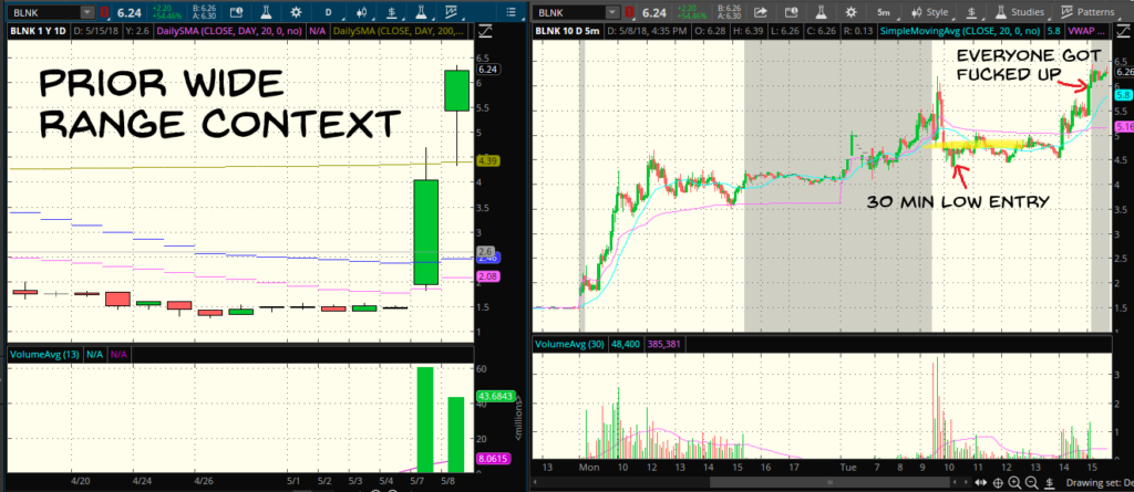 I remember one stock, BLNK, hitting multiple scans. It sucked everyone in on 30min low trigger only to squeeze into the close.