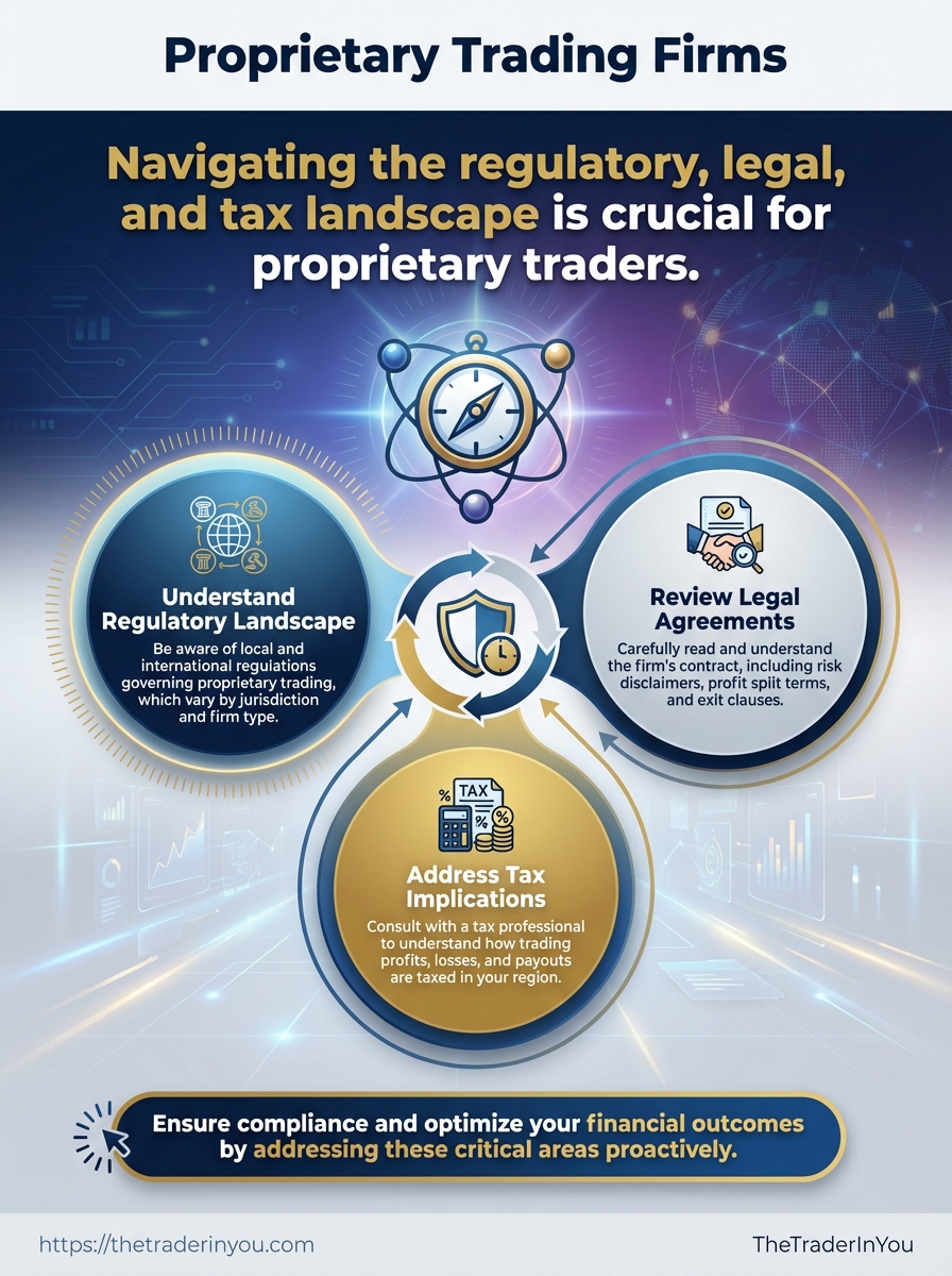 Traders and prop firms operate inside overlapping legal and tax frameworks that affect contracts, intellectual property, and reporting obligations. Understand whether a trader is an employee, an independent contractor, or working under a revenue-share / payout-only or equity arrangement — each status changes liability, withholding, benefits, and tax filings. Clear documentation up front prevents disputes and unexpected tax bills.