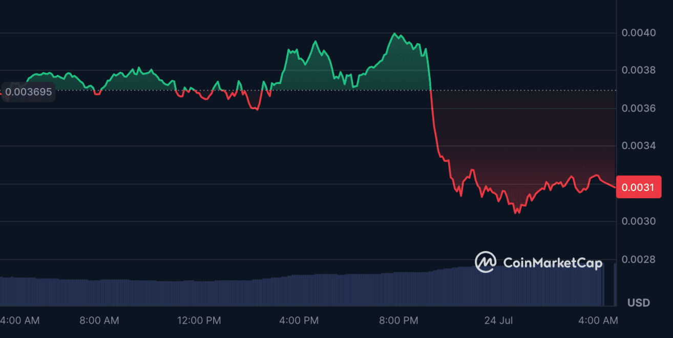 The crash deepened a more prolonged decline for PUMP, which had already plunged over 50% from its post-ICO peak of $0.0067 reached just weeks ago. By Tuesday, the token had traded below its $0.004 ICO price and continued to fall after Cohen’s update.