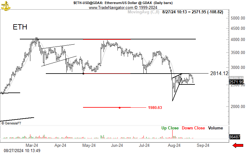 Notably, other prominent analysts have echoed similar sentiments. Popular veteran market analyst Peter Brandt recently predicted a potential decline for Ethereum (ETH), identifying it as a “well-defined short-side trade.” In a tweet, the pundit pinpointed $2,830 as the critical support threshold of a rectangle pattern, suggesting that if prices breach this level, ETH could go lower.