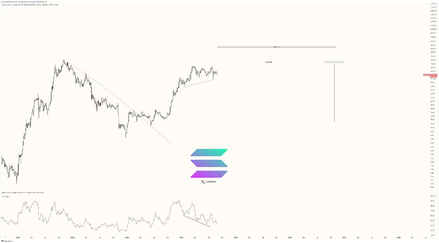 Nevertheless, despite this lull, several analysts remain confident in SOL’s potential. On Wednesday, prominent crypto analyst Javon Marks projected a surge in SOL’s price to $457. In his analysis, Marks highlighted that his $233.8 target for Solana has held steady since mid-2023, when prices were at $16.12, marking a remarkable 1,203% rise.