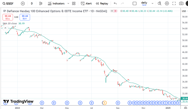 QQQY is the Nasdaq 100 Enhanced Options & 0DTE Income ETF symbol.