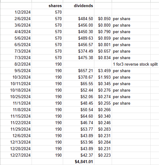 Taking into account each of the dividends received, the net dividends received by the end of the year would be $4841.