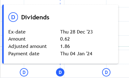 Why didn’t we calculate the $0.62 per share dividend shareholders received on January 4, 2024?