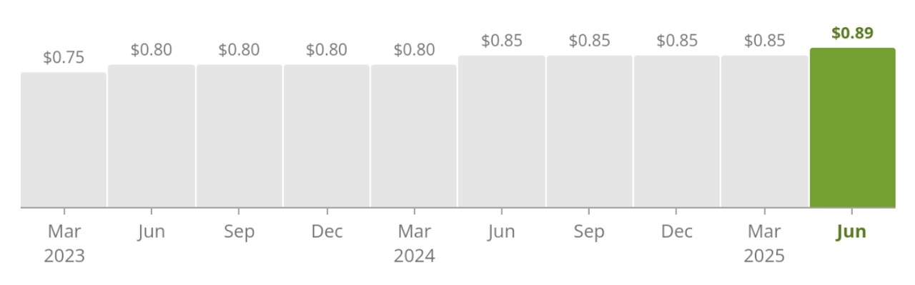 | $2.57 | $2.72 | $2.93 | $3.15 | $3.35 | ⬆ | $3.52✝ |