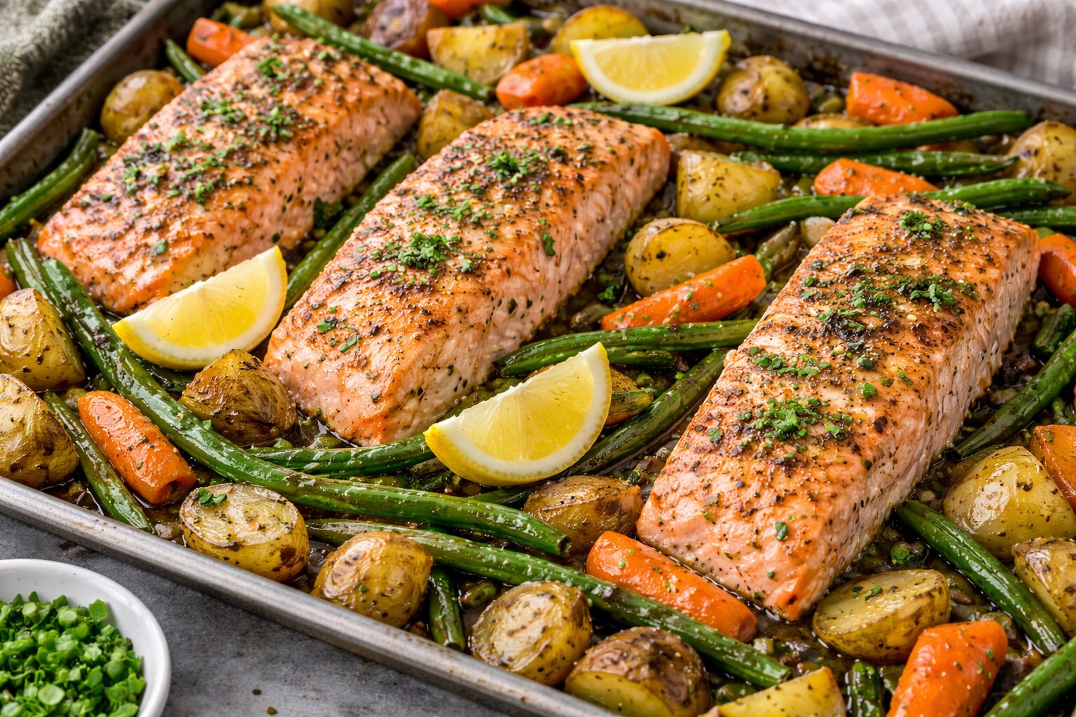 If you’re in the mood for something a bit more elegant but still easy, try a sheet pan salmon dinner. It’s as easy as seasoning the fish, tossing it with carrots, potatoes, and a few sprigs of green beans, then roasting it all in the oven.