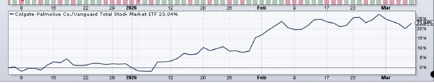 In the panel, we can clearly see that CL is outperforming the market – at least in the past three months.