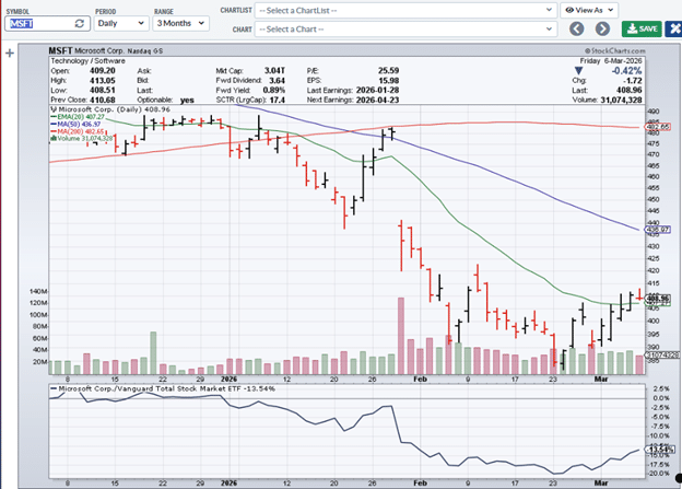 In contrast, Microsoft (MSFT) has been underperforming the market in the last three months…
