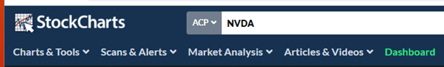 Next to the symbol search field in StockCharts, we have two charting formats.