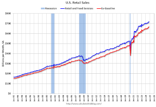 This graph shows retail sales since 1992. This is monthly retail sales and food service, seasonally adjusted (total and ex-gasoline).
