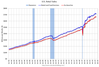 This graph shows retail sales since 1992. This is monthly retail sales and food service, seasonally adjusted (total and ex-gasoline).