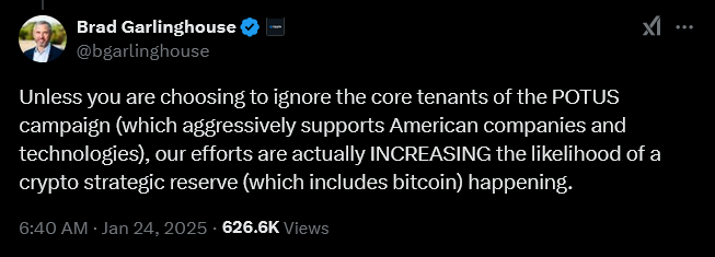 And some seem to blame Ripple for a shift in focus from the OG crypto to altcoins. Pierre Rochard, vice president of Riot Platforms, claims that Ripple is actively lobbying against a Strategic Bitcoin Reserve (SBR).