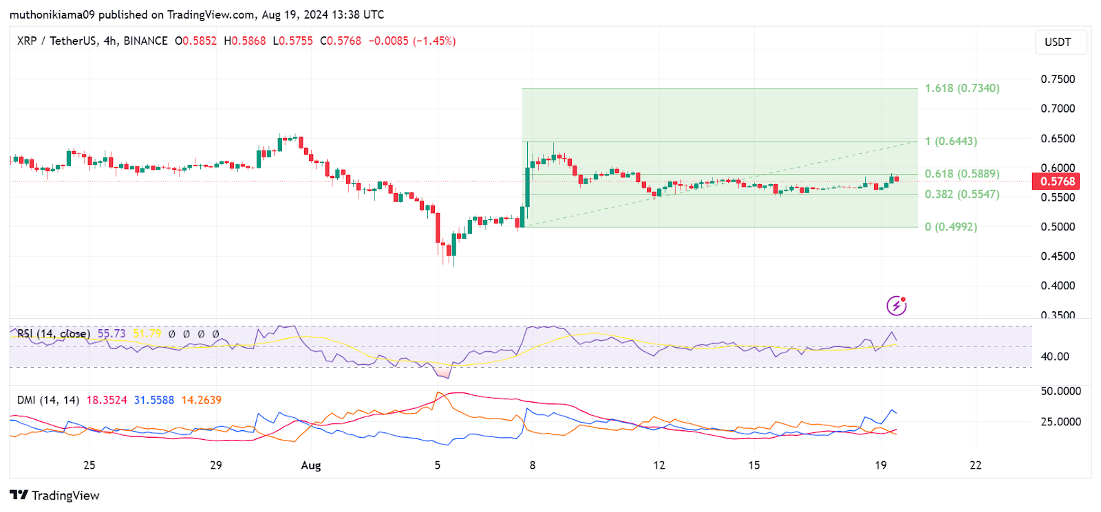 XRP price has jumped by over 30% in the last two weeks to trade at $0.59 at the time of writing. After recovering from the August 5 crash that was felt across the cryptocurrency market, XRP has been defending the $0.55 support level.