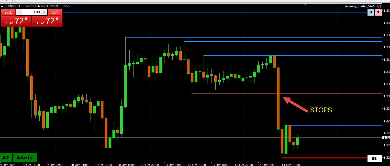 GBPUSD 1 HOUR CHARTT October 14, 2025 (stops run below the prior day’s low)