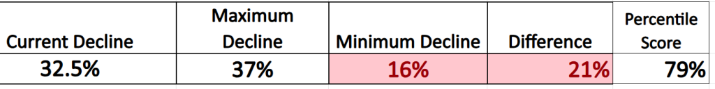 The current decline ranks as the third largest percentage loss when compared to historical declines. This method places the current decline in a specific order among past declines, providing a clear relative positioning. The current 32.5% drop places it in the 79th percentile of all recorded declines for this asset. This shows how severe the current decline is compared to all others, with a higher percentile indicating a more severe drop.