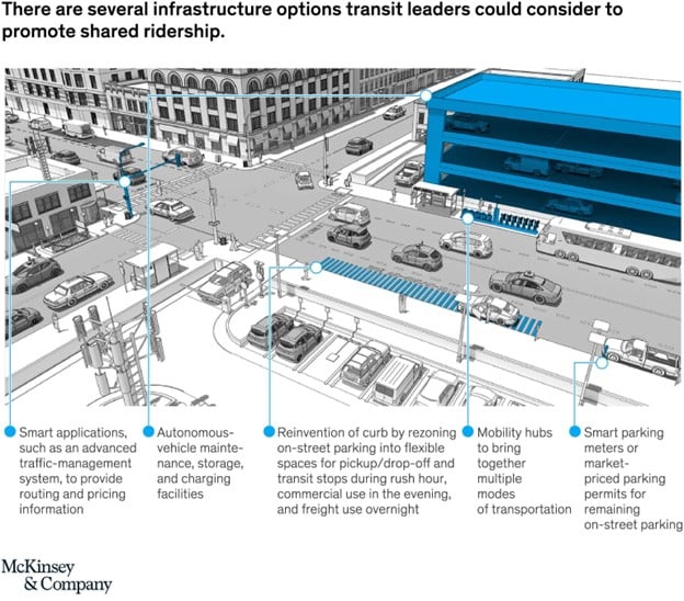 Cities must adapt their infrastructure with smart traffic management systems, flexible curb spaces for pickup and drop-off, and charging networks.