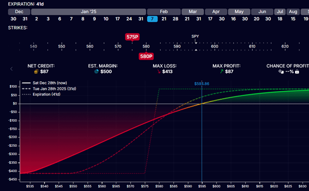 Now let’s look at out-of-the-money put credit spreads on SPY with 41 days till expiration.