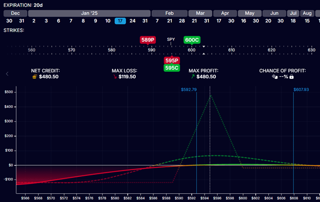 Risking a max loss of $119.50 with a potential max profit of $480.50.