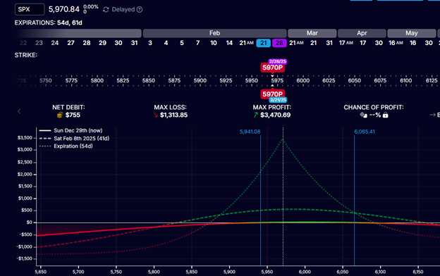 Let’s see how they change as we roll this fly to the February 7th expiration (three weeks further out).