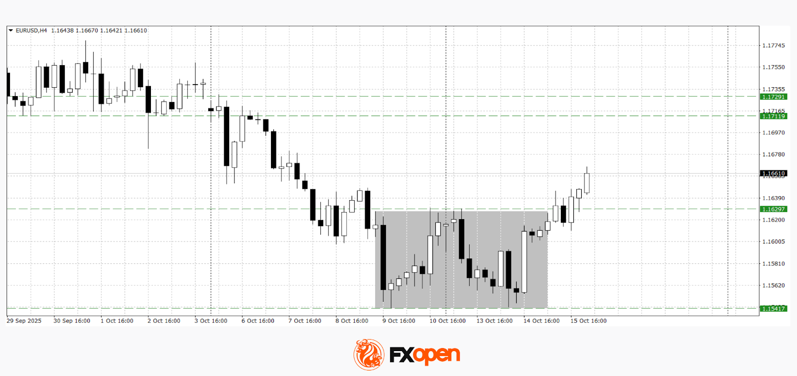 In the EUR/USD pair, buyers regained control after another test of key support around 1.1540, helping the price recover above 1.1600.