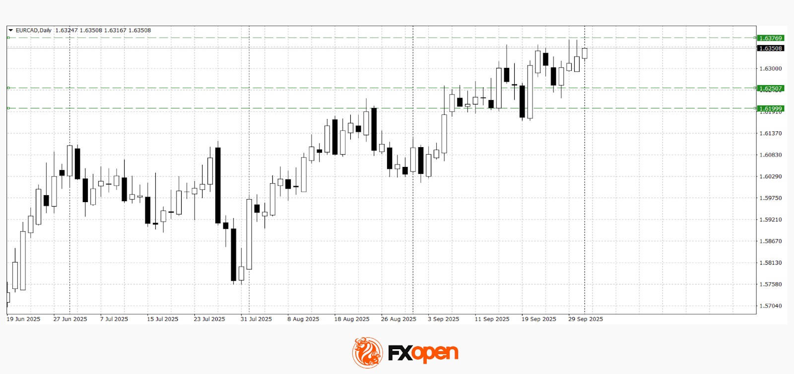 The euro is showing mixed dynamics: EUR/USD is consolidating near strategic levels, while EUR/CAD continues its upward movement, supported by Canadian dollar weakness and fluctuations in oil prices. This performance comes amid anticipation of key economic releases: in Europe, the market is focused on PMI and inflation figures, while in the US attention is on private sector employment reports and manufacturing indicators. The threat of a US government shutdown adds uncertainty, heightening investor caution. The direction of further movement will depend on the balance of signals on both sides of the Atlantic: stronger eurozone inflation and softer US data may support the euro, whereas weak European numbers combined with resilient figures from the US/Canada could trigger a deeper correction.