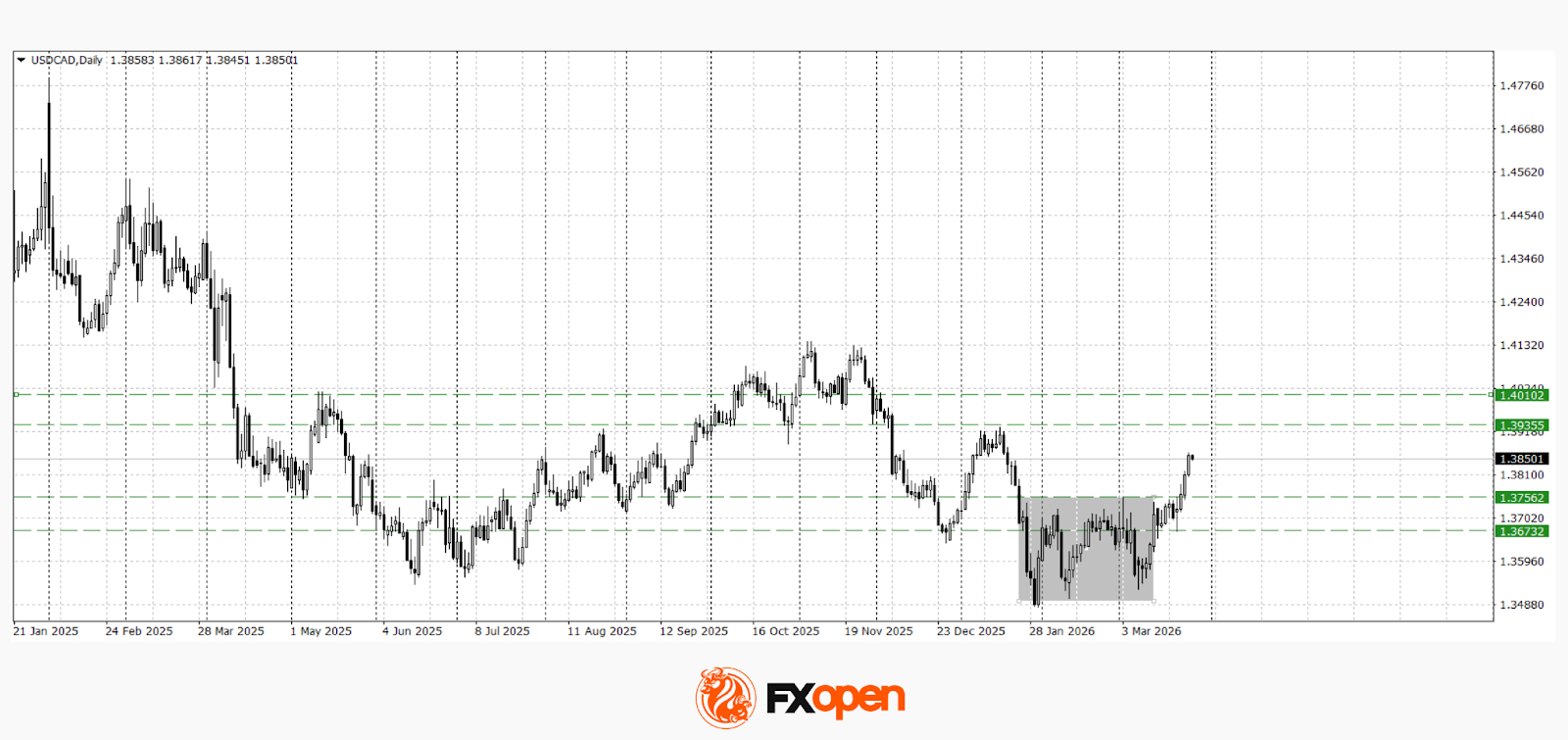 Commodity-linked currencies continue to weaken amid rising geopolitical tensions, which are boosting demand for safe-haven assets and increasing volatility across both FX and commodity markets. The US dollar is gaining support from demand for liquid and defensive assets, while currencies sensitive to commodities and global risk appetite remain under pressure. Against this backdrop, AUD/USD and USD/CAD have broken through key technical levels, pointing to strengthening momentum and raising the likelihood of further moves in the same direction.