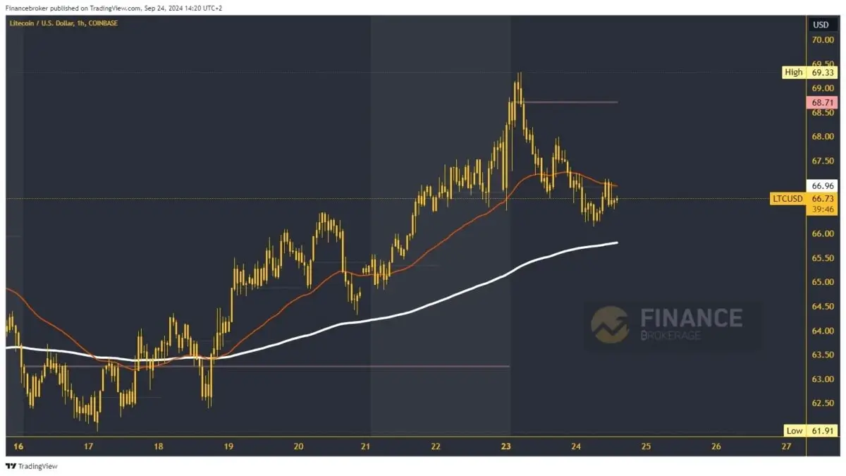 - The seven-day bullish trend of the price of Litecoin was stopped yesterday at the $69.33 level