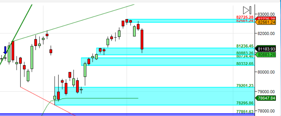 SHARK Pattern is forming with price can fall towards till 78000 till holding below 81441 .