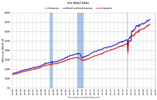 This graph shows retail sales since 1992. This is monthly retail sales and food service, seasonally adjusted (total and ex-gasoline).