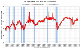 This graph shows light vehicle sales since the BEA started keeping data in 1967.